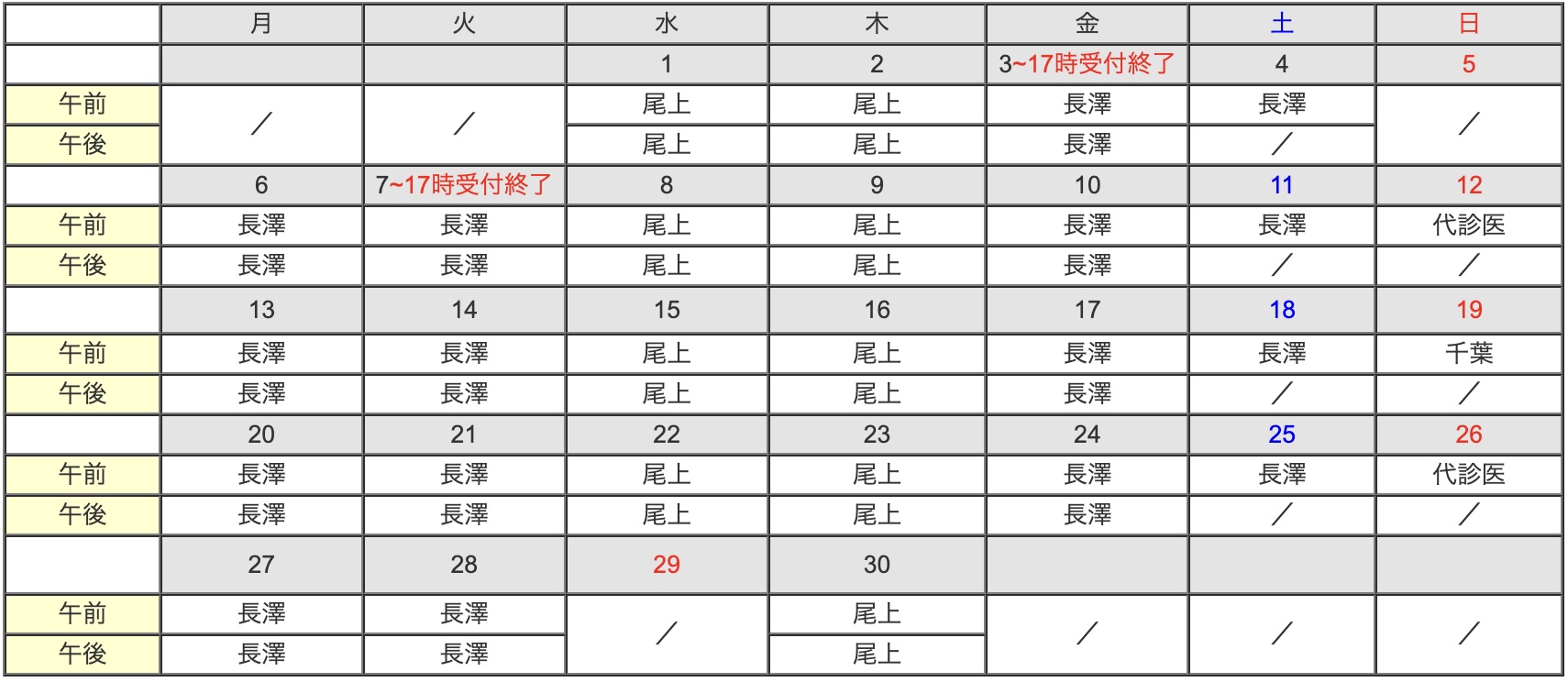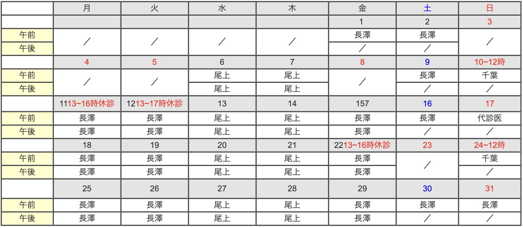 ・5/3(日),4(月),5(火),8(金),23(土)は、終日休診となります。 |